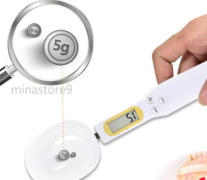 プーンのようにすくって計れるのは大変便利。 使用後、スプーンを簡単にはずして水に洗え、お手入れは楽。 0.5g〜500gまで、0.1g単位で高精度で計れ、レシピ通り正確に作りたい時には大活躍。 スプーンには目盛りがついており、液体のもの