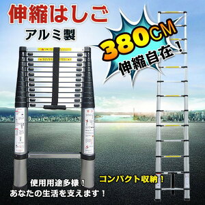 ◆脚立とはしごの二つの役割を兼ね備えた便利品 ◆折りたたみ式だから、収納スペースにも困らない! ◆電球交換やエアコン掃除、洗車など様々な場面にて活躍! ◆最長380cm!使用時には一段ずつ引き延ばしていき、必要な高さでご使用可