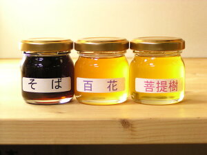 ※花・百花・ぼだいじゅの 3種類になります。 ・品 名 天然蜂蜜 ・原産国 日 本 ・保存法 常 温 ・容 量 50g×3 ・賞味期限 約2年(裏ラベルに記載)