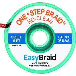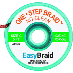 《メーカー》DESCO JAPAN(株)《品番》OS-C-5AS《特長》●プリント基板やコンピューター、携帯電話などの電子機器の基板の修理・修正に使用します。●基板上の部品やパッドからハンダを簡単に吸取れます。●良質な銅素線が編み込まれてい