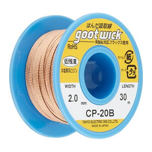商品詳細 ・銅の編組線に非塩素系の特殊フラックスをしみこませたはんだ吸取線です。 用途: はんだ除去 幅(mm):2.0 長さ(m):30