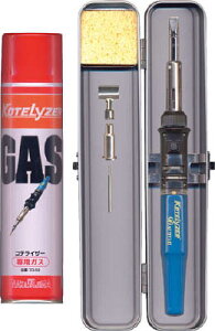 【特長】●コテライザー70をベースに圧電式の自動着火機能を採用しました。●はんだこて・熱風機として使用可能です。 【用途】●電気工事のはんだ付け。●通信工事のはんだ付け。●熱収縮チューブの収縮。 【仕様】●ガス充填量(ml):28