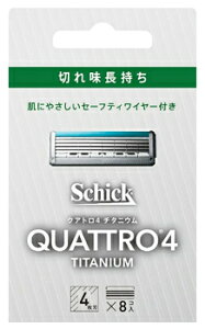 リニューアルに伴いパッケージ・内容等予告なく変更する場合がございます。予めご了承ください。 名 称 Schick シック クアトロ4 チタニウム 替刃 内容量 8個 特 徴 ◆切れ味長持ち 肌にやさしいセーフティワイヤー付き◆肌にやさ