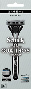 Schick(シック) クアトロ5チタニウム ホルダー(刃付き+替刃1コ) 髭剃り カミソリ より深く、より快適に剃れる5枚刃。 ※刃と刃の間隔を狭めた設計の替刃を採用することで、狭いところも剃りやすいコンパクトヘッドを実現...