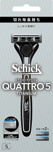 スタイル:ハンドル◆商品名:Schick(シック) クアトロ5チタニウム ホルダー(刃付き+替刃1コ) 髭剃り カミソリより深く、より快適に剃れる5枚刃。※刃と刃の間隔を狭めた設計の替刃を採用することで...