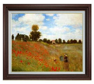 油絵 絵画 直筆仕上げ クロード・モネ アルジャントゥイユのひなげし アートフレーム サイズ 額入りL:ブラウン 【油彩 布キャンバス 国内生産】 絵画 販売 風景画 651×541mm 複製画 送料無料