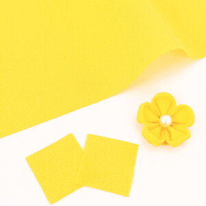 レーヨンの無地ちりめん、無地ポリエステルちりめんよりもシボ(表面のでこぼこ)が細かく、高級感があります。薄手の軽い生地のためつまみやすく、つまみ細工には特に人気です。●鮮やかな黄色で、「菜の