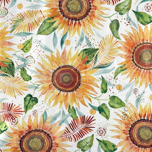 ひまわり デジタル/クリーム MO-4856 ひまわりの花を生地いっぱいに描いたデジタル・プリントひまわりの花弁、種、葉脈などまでデジタル・プリントらしく繊細、精緻に描いています。「ひまわりや木の葉は幸福な気持ちにさせてくれ...