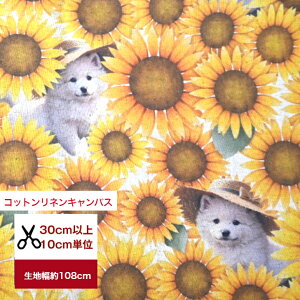 いオックス生地。 トートバッグなどの袋物はもちろん、エプロンやミトンなどのキッチン周り、クッションカバーなどのインテリアにと幅広い用途にお使いいただけます。 [ひまわり 向日葵 ヒマワリ...