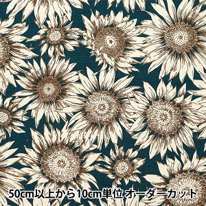 【数量5から】 生地 『綿麻シーチング ひまわり 99201-3E』 落ち着いた色合いのひまわり柄 落ち着いたカラーリングのひまわり柄の綿麻シーチング生地です。 巾着やポーチの他にもエプロンやランチョンマット...