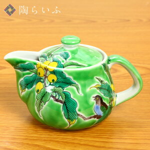 【九谷焼】ポット ひわ地びわに鳥/美山窯