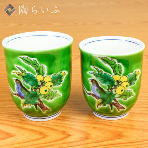 商品名:【九谷焼】組湯呑 ひわ地びわに鳥/美山窯 明治後期、石川県能美の地に九谷焼上絵付窯として開窯した、「美山窯」の作品。伝統的作風の中に現代的な感覚を取り入れ、造形・色調・デザインを研究し...