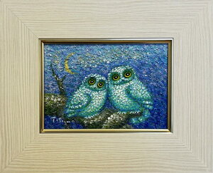 【商品の詳細】 〈作品説明〉 「聖夜のふくろう(2羽)」佐野千恵子(直筆油彩画) ?ふくろう絵画? 可愛らしい「ふくろう」が描かれた作品は昔から展眼力、神通力がある鳥として尊ばれ、 語感が「不苦労」「副籠」「副来朗」などに通じ
