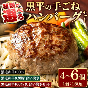 【ふるさと納税】<種類選べる>鹿児島県産 黒平の手ごねハンバーグセット《合い挽き/黒毛和牛100%》(150g×4〜6個) ハンバーグ 黒毛和牛 黒豚 合い挽き 牛肉 牛 100%...