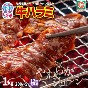 【ふるさと納税】【定期便】味付き牛ハラミ 1kg(200g×5) 計 3kg〜 12kg 選べる定期便(3回〜12回) | 特製タレ 焼くだけ 手作業で加工 焼肉 お取り寄せ バー...