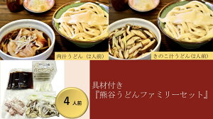 ・ふるさと納税よくある質問はこちら ・寄附申込みのキャンセル、返礼品の変更・返品はできません。あらかじめご了承ください。 返礼品説明 返礼品名 手打ち熊谷うどんファミリーセット(4人前)(肉汁うどん2人前+きのこ汁うどん2人前