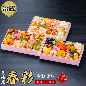 【ふるさと納税】生おせち 和洋中 三段重 43品 3-5人前 春彩 玉清屋 冷蔵 12月31日着 おせち 和風 洋風 中華 先行予約 期間限定 玉清 2026 新春 愛知県 大府市...