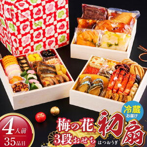 【ふるさと納税】梅の花 おせち 2026年 和風 初扇 三段重 4人前 35品 12月31日お届け 3段おせち おせち料理 お正月 祝い重 年末 新年 迎春 お祝い 美食 食べ物 ...