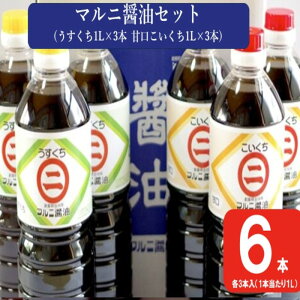 【ふるさと納税】マルニ醤油セット(甘口こいくち1L×3本 うすくち醤油1L×3本)AS-2119 醤油 万能 濃口 薄口 かけ醤油 おでん お手軽 味噌 味噌汁 夕食 晩御飯 和食...