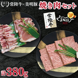 【ふるさと納税】【常陸牛 A5ランク・美明豚焼肉セット】常陸牛カルビ180g+美明豚200g(ロース100g・ばら100g) 冷凍 国産牛 和牛 牛肉 豚肉 ブランド豚 茨城県 水...