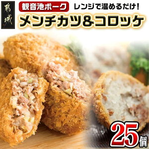 【ふるさと納税】「観音池ポーク」メンチカツ&コロッケ25個セット - 観音池ポーク メンチカツ コロッケ メンチカツ5個入り×3パック コロッケ5個入り×2パック 都城産 送料無料...