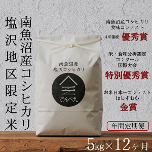 【ふるさと納税】【年間定期便令和7年産新米】南魚沼食味コンクール4年連続優秀賞 塩沢地区限定米5kg×12回 南魚沼塩沢産コシヒカリ | お米 こめ 白米 食品 人気 おすすめ 送...