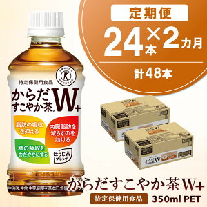 【ふるさと納税】【2カ月定期便】からだすこやか茶W+ 350mlPET×24本(合計2ケース)【特定保健用食品】【コカコーラ トクホ 特定保健用食品 無糖 食物繊維 ほうじ茶 烏龍...
