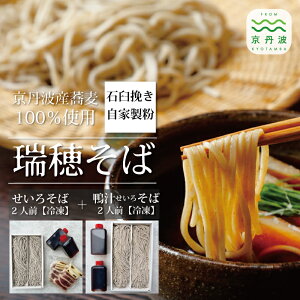 【ふるさと納税】【 年越しそば 】 石臼挽き 自家製粉 瑞穂そば ( 鴨汁せいろそば2人前+せいろそば2人前) 詰め合わせ 計4人前 つゆ付き ≪ 京丹波町産蕎麦 100%使用 ≫...