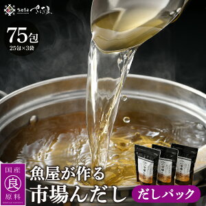 【ふるさと納税】だしパック 市場の魚屋が作る 国産天然素材 本格出汁 パック「市場んだし」 25包 × 3袋(計75包)【本格 だし 出汁 ダシ 厳選 こだわり 国産 家庭用 保存...