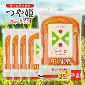 【ふるさと納税】≪5ヶ月定期便≫ 特別栽培米つや姫5kg×5ヶ月連続 計25kg 山形県庄内産 ご希望期間の毎月下旬頃お届け JA 農協 産地直送 精米 白米 庄内米 東北 遊佐町...