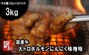 【京都府舞鶴市】【 訳あり 】 国産牛 大トロホルモン にんにく味噌味 3kg (100gパック) 小分け ニンニク ガーリック 味噌味 ホルモン 焼き 焼肉 味付 小分け 冷凍 ...