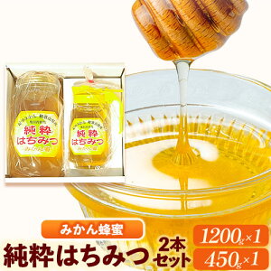 【ふるさと納税】純粋はちみつ(みかん蜂蜜)ギフトセット 2本セット 1200g×1本+450g×1本 梅田養蜂場《90日以内に出荷予定(土日祝除く)》和歌山県 岩出市 蜂蜜 はちみ...
