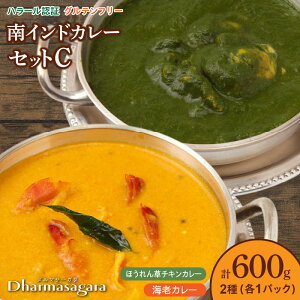 【ふるさと納税】カレー 南インドカレー セット インドカレー 2種 各1パック 計 600g レトルト 本場の味 ほうれん草チキンカレー 海老カレー マイルド ダルマサーガラ ハラ...