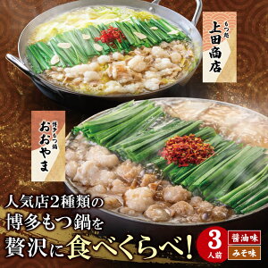 【ふるさと納税】博多もつ鍋食べ比べ2種セット(味噌味/醤油味) 【おおやま/3人前・上田商店/3人前】総重量2kg 国産牛 モツ鍋 食べ比べ 冷凍 鍋 鍋セット セット 名物 グル...