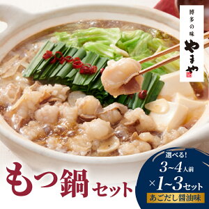 【ふるさと納税】【選べるセット数】やまや 博多もつ鍋セット あごだし醤油味(3〜4人前)(1セット・3セット) もつ鍋 国産 牛もつ モツ 博多 やまや スープ付き 麺付き 冷凍 ...