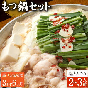 【ふるさと納税】【選べる定期便 3ヶ月/6ヶ月】もつ鍋 セット 塩とんこつ 2〜3人前【陽はまたのぼる】モツ鍋 鍋セット モツ もつ 牛もつ 牛モツ 国産牛 塩 とんこつスープ ス...