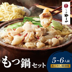 【ふるさと納税】博多もつ鍋やまや もつ鍋セット あごだし醤油味 5〜6人前 鍋 牛もつ 国産牛小腸 スープ付き ちゃんぽん麺付き 薬味付き ホルモン モツ 牛ホルモン しょうゆ 博...