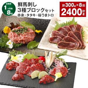 【ふるさと納税】【定期便】【1ヶ月毎8回】鮮馬刺し 3種ブロックセット(赤身×2・タタキ・桜うまトロ) 計2.4kg(300g×8回) 馬刺し 馬肉 お肉 肉 馬脂 タレ付き おろ...