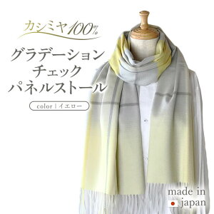 【ふるさと納税】カシミヤ100% グラデーションチェックパネル ストール イエロー RF401 日本製 長さ190cm 幅50cm チェック柄 ファッション小物 おしゃれ カシミア...