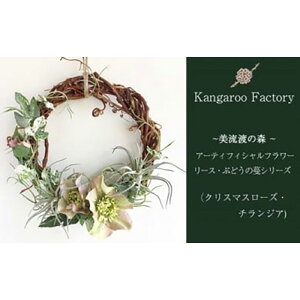 なリースです。 名称 美流渡の森 アーティフィシャルフラワー・リース ぶどうの蔓シリーズ (クリスマスローズ・チランジア) 内容量 外径約20cm 事業者 Kangaroo