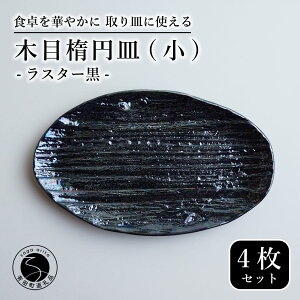 【ふるさと納税】【光沢と木目がかわいい】有田焼 16cm 木目オーバル皿 (小) 黒 4枚セット 食卓に特別感をくれる1枚【喜鶴製陶】ケーキ皿 取り皿 小皿 食器 有田焼 楕円皿 ...