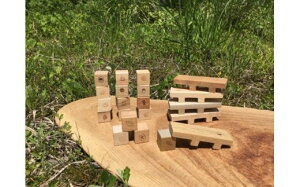 福岡県の耳納連山で育った耳納杉の積み木。『無塗装』なので口元に持っていっても安心