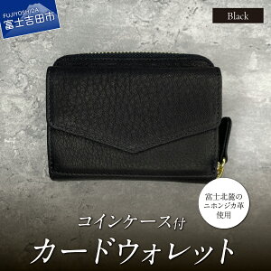 【ふるさと納税】 カードウォレット コインケース付 ジビエレザー 選べるカラー 黒 ブラック ナチュラル 青 ブルー 白 ホワイト 鹿革 金襴緞子 革製品 レザー 野生動物 ニホン...