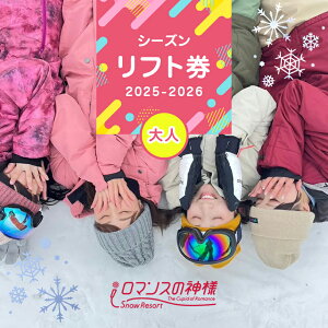 商品説明 名称 【早割】スノーリゾートロマンスの神様 2025-2026シーズンリフト券 大人 内容量 2025-2026 シーズンリフト券 大人・中高生 × 1枚 内容 最大斜度46度の上級者コースから、広いファミリー向けのゲレン...