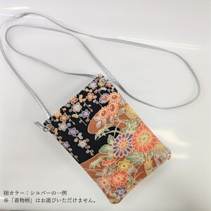 商品説明 名 称 着物スマホポーチ 容量 スマホポーチ ×1点 ・サイズ:縦19cm×横14cm(紐140cm) ・ショルダー紐色:ブラック、シルバー、ゴールド ・素材:絹、牛革、ポリエチレン/ポリウレタン ※着物柄は「お任せ」となり...