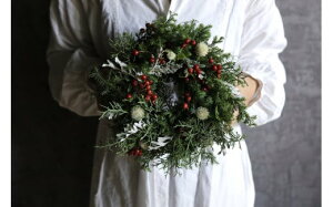 【ふるさと納税】 Xmas スワッグ 【あかいみ】 新潟 阿賀 たけむら生花店 |季節 赤 北欧 おまかせ インテリアグリーン ドライフラワー 花 贈り物 ギフト 送料無料 プリザ...