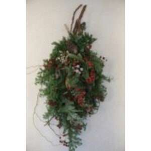 内容針葉樹を使ったスワッグです。フレッシュの状態でお届けとなりますが実ものやツル、アクセントとして使う葉ものはドライフラワーが含まれます。サイズは全長約45cm(素材の部分は約40cm)横幅約23cmのサイズ感となります...