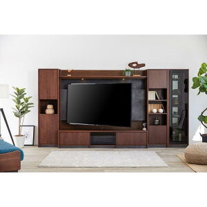 【配送日指定対応】 おうち時間をたのしく。 中央のフラップ扉内にはデッキを2台設置でき、扉がスリットデザインなので扉を閉めたままリモコンが使え、配線は背面から出せます。 フルオープンレール付の左右の引出しは、リビングのあれ