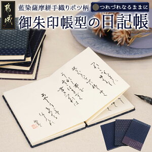 表と裏表紙に藍染薩摩絣手織りポツ柄を使用した御朱印帳型の「つれづれなるままに」東郷の日記帳です。 季節の折々や事始めに、またはふと思うところを言葉に書き留めてみてはいかがでしょうか。つれづれなるままに〜 東郷織物は、昭
