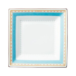 清涼なターコイズブルーに繊細な白盛が愛らしく、小花を纏う菱文様は、和テイストの彩り。 ノリタケ【ハミングブルー】23cmスクエアプレート